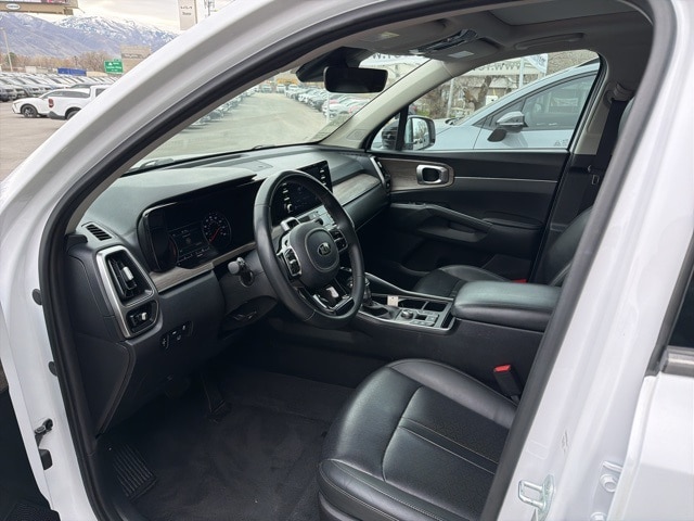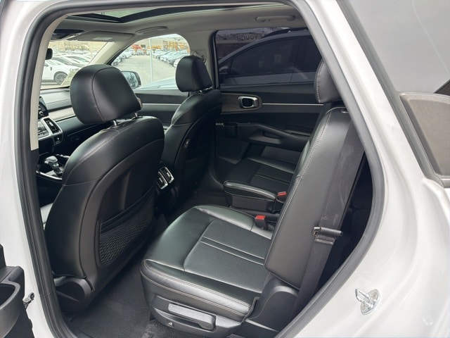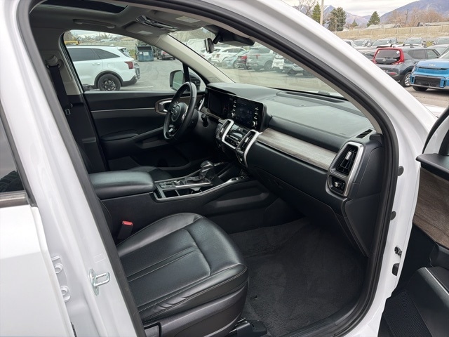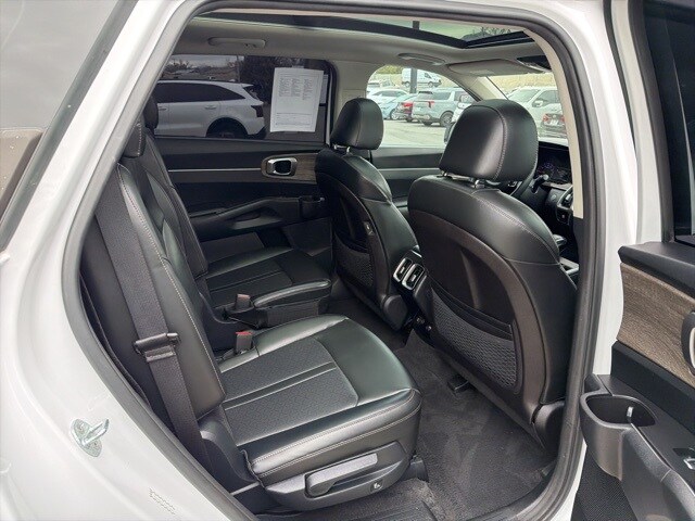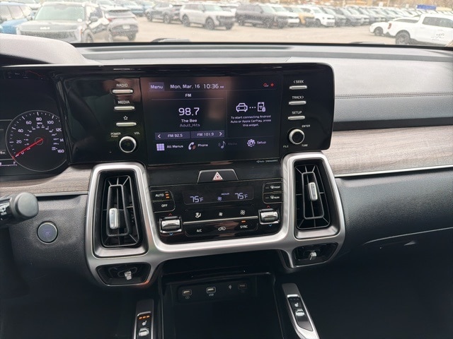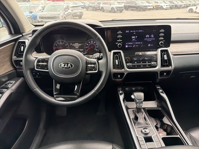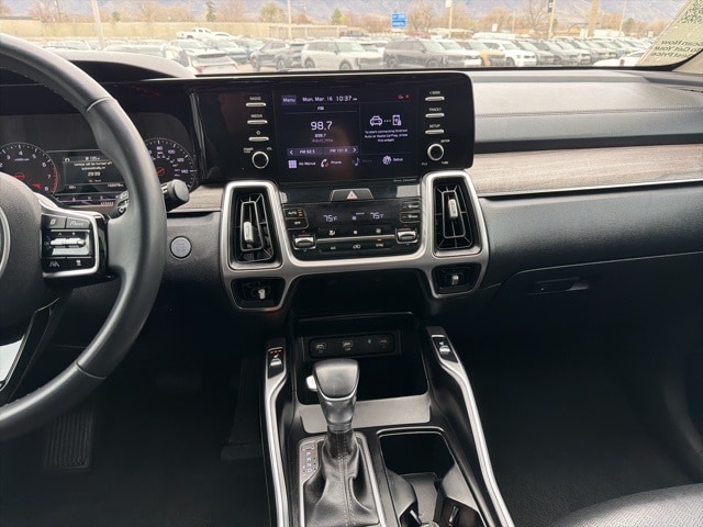 Inside, the Sorento EX captures significant user attention with its upscale materials and family friendly layout. Leatherette seating, a power drivers seat, and heated front seats create a comfortable environment, while the intuitive 10.25-inch touch screen one of the most viewed features offers seamless access to navigation, Apple CarPlay, Android Auto, and advanced vehicle settings.